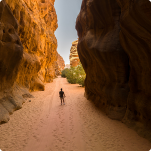 Embark on a light trek through AlUla’s desert labyrinth of trails and narrow canyons, offering a unique perspective on nature’s marvels and ancient wonders. This half-day adventure explores hidden paths and embraces the tranquillity of the desert, culminating with a bedouin-style refreshment break amidst the dunes.