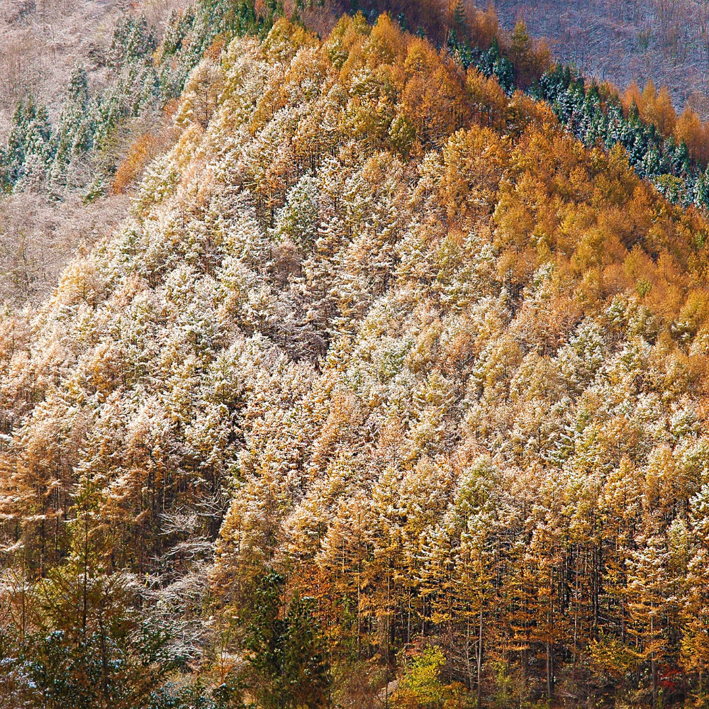 Karamatsu trees are unique in that they are the only conifer or ‘evergreen’ to actually change colour. Often growing in vast carpets across mountain ranges in Japan, they are easy to spot from a distance!