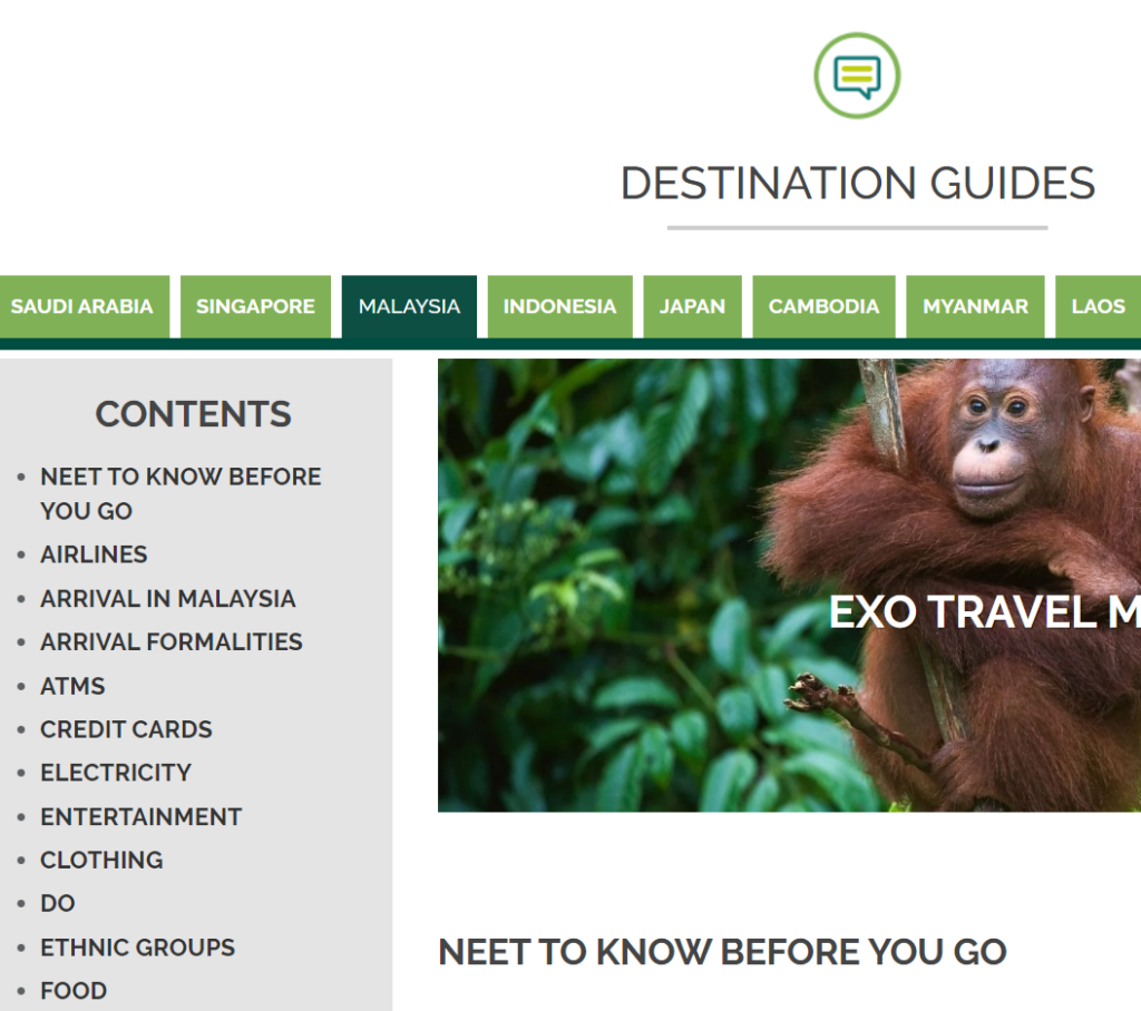 Our Destination Guides contain detailed information about the nitty gritty questions- voltage, currency, airline connectivity- as well as other questions your guests may have around topics such as shopping and what to pack.