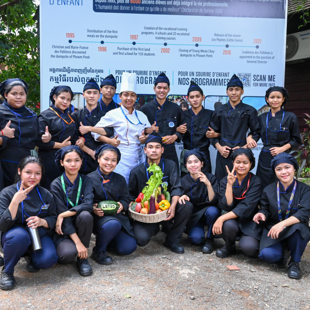 Pour un Sourire d’Enfant (For a Child’s Smile) helps disadvantage children in Cambodia escape the cycle of poverty by equipping them with valuable education and vocational skills. Their training school has integrated Environmental Education into the curriculum and implemented strategies to reduce food waste, eliminate single-use plastics and compost any remaining unused food products.