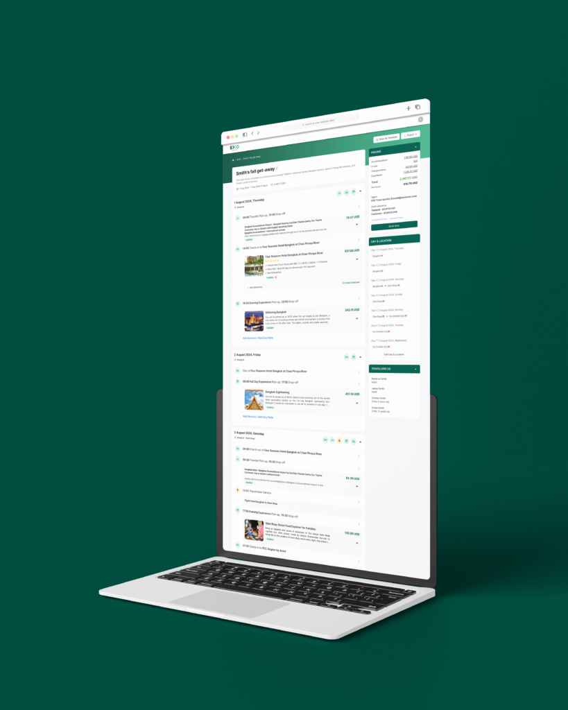 This flagship software is the ultimate tool for travel partners looking to accelerate their workflow and serve more customers without compromising on quality. Partners can choose from a selection of suggested templates or work with a travel consultant to design a fresh itinerary, but with the ability to make small changes and adjustments in real time.