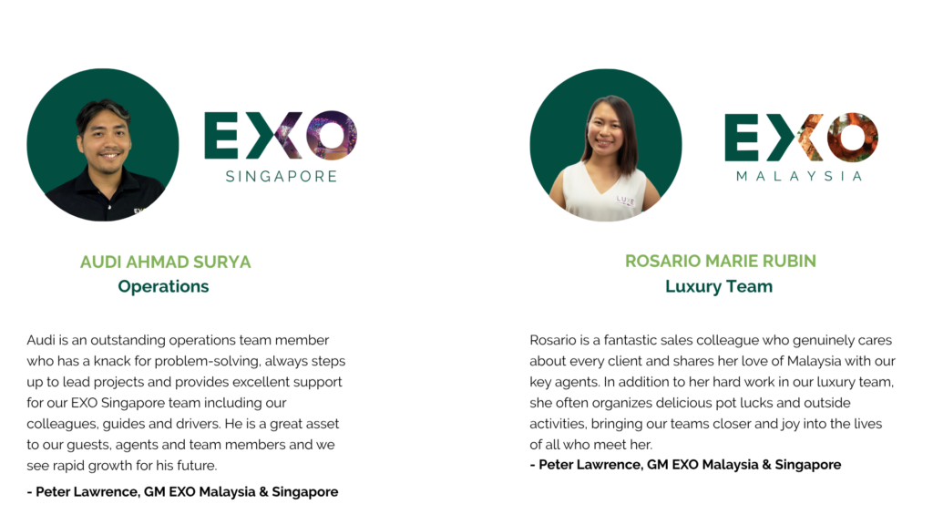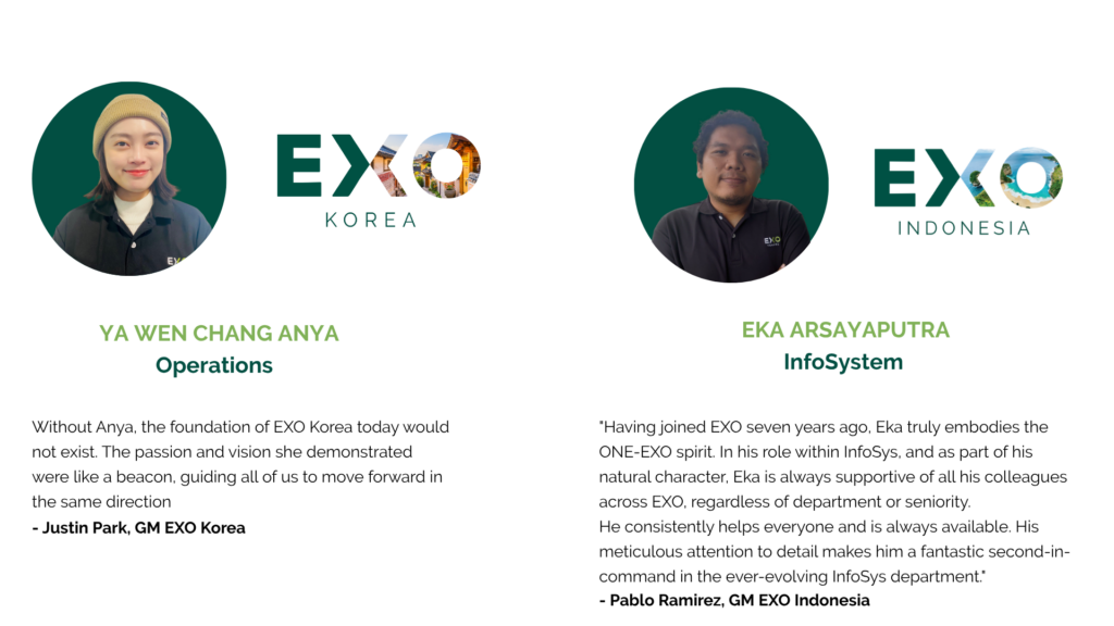 ‘Meeting other Best Team Members from other EXO destinations & from different departments is an amazing experience. I learnt from them alot and really understand the values that EXO people can bring together to achieve our success over these years.’