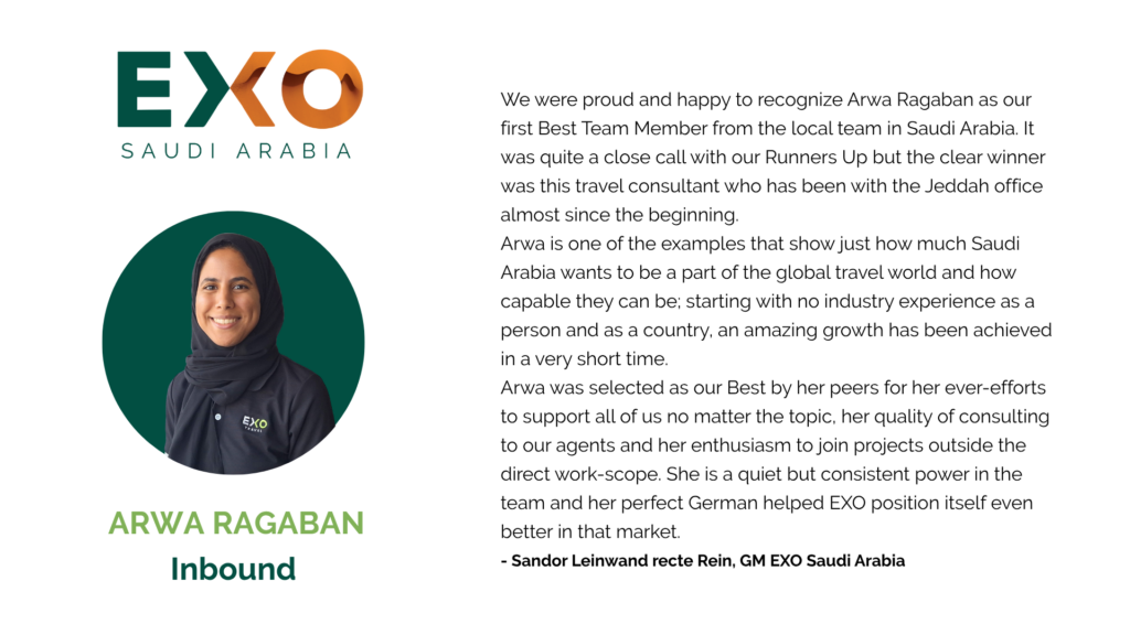 At EXO, we believe that the people behind the scenes, those who go above and beyond to bring our vision of extraordinary travel to life, deserve to be celebrated in extraordinary ways. That is why each year, we honour our Best Team Member of the Year award winners with something truly special: a once-in-a-lifetime journey.