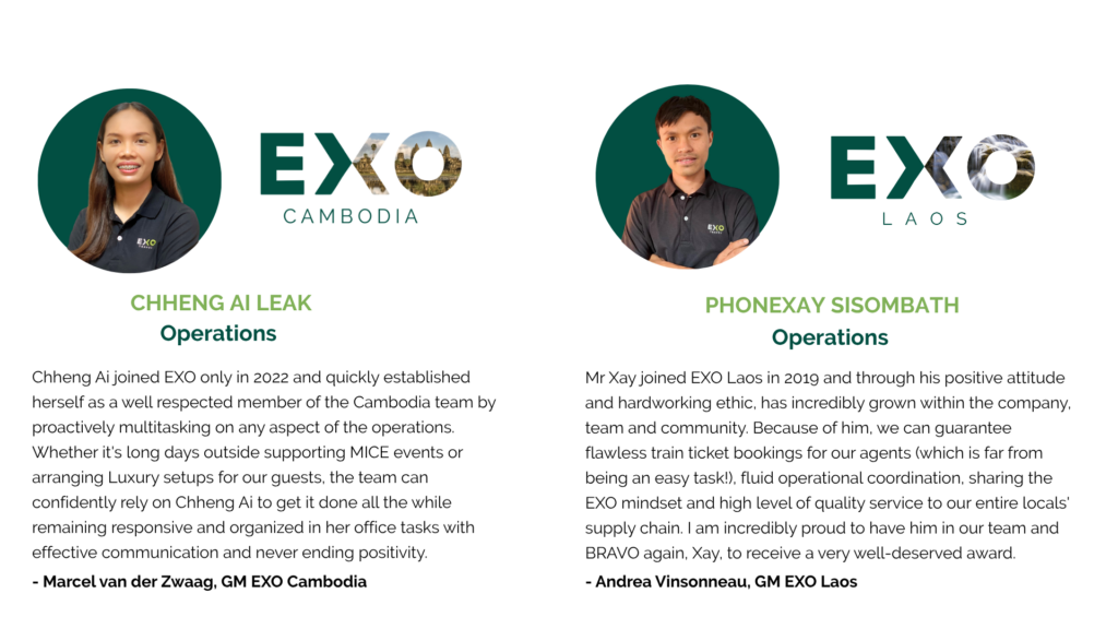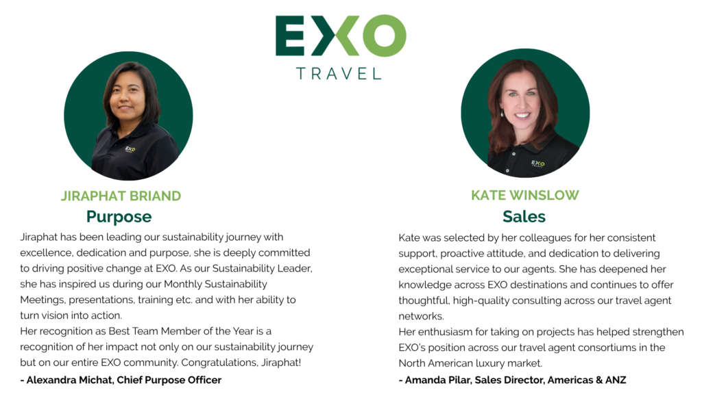It takes exceptional people to create the experiences EXO is known for, and this year’s award winners truly embody what makes our team special. To shine a light on their achievements, we’ve invited leaders from each destination to share a few words about what sets these individuals apart and the positive impact they’ve had on their teams, partners and travellers.