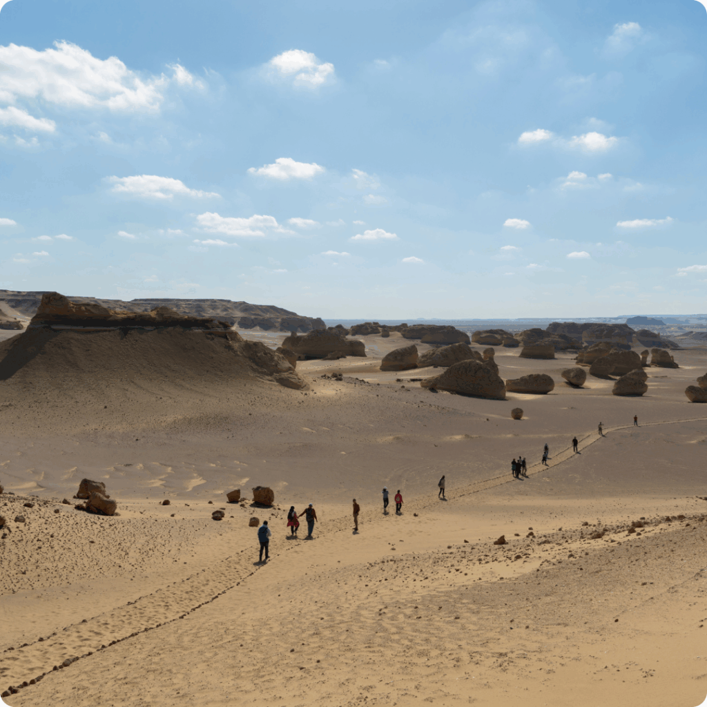 - From Cairo to Bahariya Oasis: 4–5 hours by car (gateway to the White Desert)