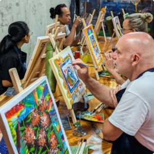 It’s a relaxing and fun way to connect with family and meet new friends in a lively social atmosphere while learning the art of painting.