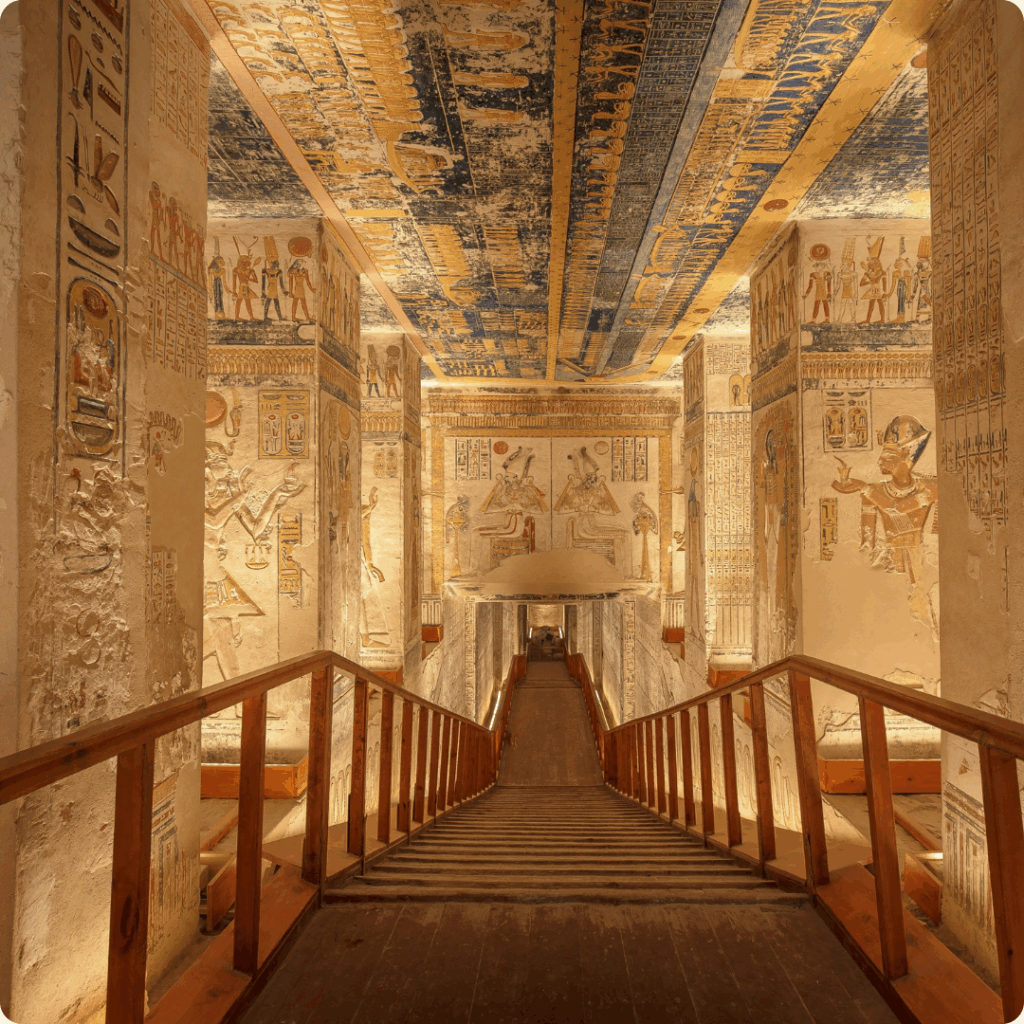 Valley of the Kings: Iconic tombs including Tutankhamun and richly painted chambers such as Ramses VI
