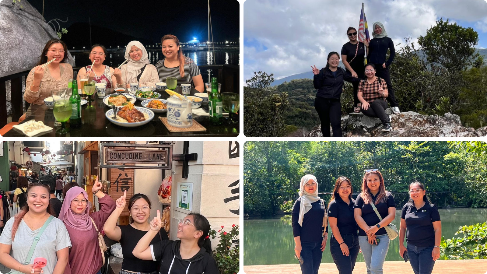 Richelle (Travel Consultant), Natalie (Contracting Executive), Izzy (Travel Consultant), and Levia (Travel Consultant) completed a multi-stop inspection across the Cameron Highlands–Ipoh corridor, wrapping up with a beach break at Pangkor Laut.