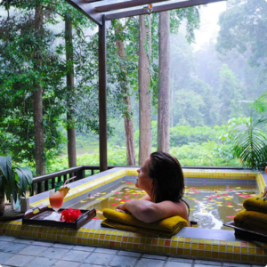 An adults-only sanctuary featuring dramatic bamboo architecture. The villas boast private plunge pools and sweeping views of the South China Sea.