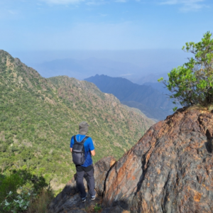 Embark on a hiking adventure on Jabal Sawda, considered Saudi Arabia’s highest peak.
