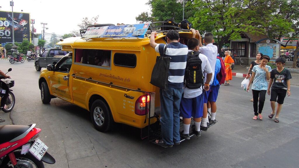 There are also songthaews that run between cities and towns. These will usually have a fixed price and are non-negotiable. Prices are a little high, so this is a disadvantage if someone was traveling alone, but if in a group, the fee can be shared between everybody, making it an ideal mode of transportation for a big group.