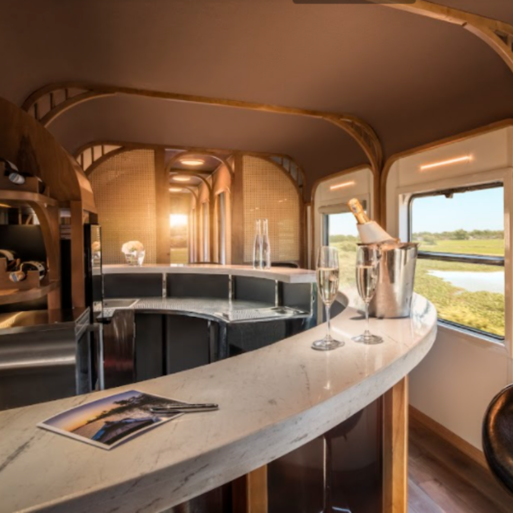 On board, guests are treated to gourmet meals and free flow beverages. The carriage features six private booths, with a total capacity of 12 passengers per journey, ensuring attentive yet discreet service for each guest.