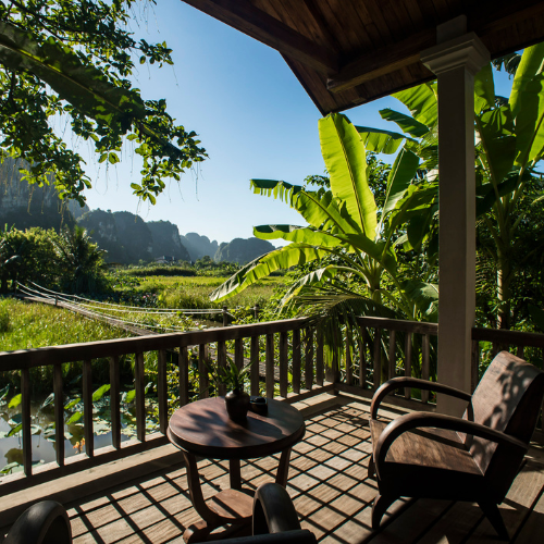 Nham Village Resort (Ninh Binh): Inspired by the ancient villages of Northern Vietnam, the 13 houses, all with balconies, offer a rustic yet elegant and stylish feel.